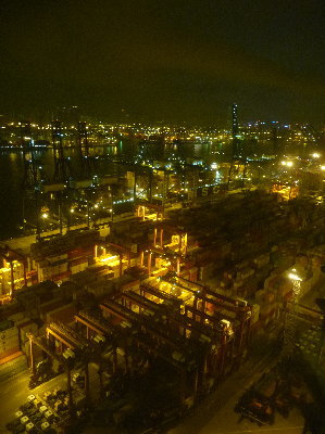 でも目の前がコンテナヤードなので窓からの眺めはある意味壮観。そして、翌2/12には巨大客船クイーンメリー2が入港(多分)してくるとこがたまたま見れたようだ。船好きでもなんでもないので有難みなし。残念。