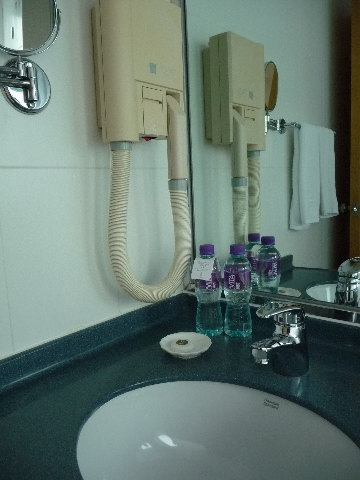 ドライヤーは固定式でちょっと使いにくい。そういえば私香港で買ったドライヤー持ってたけど持ってく?>私信。